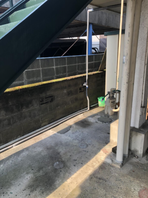 3階建てであるが、3階はもう使用しないとの事で貯水タンクとポンプを撤去してほしいとの事でメーターから水道管を直接繋ぐ作業となりました。
