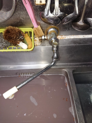 10年以上使われた厨房蛇口パッキンが無くなった状態でハンドルを絞め込まれており、内部状態も悪かったため本体交換