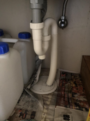 洗面トラップ交換 洗面トラップ接続部分からの漏水、劣化からトラップ自体のの交換となりました。