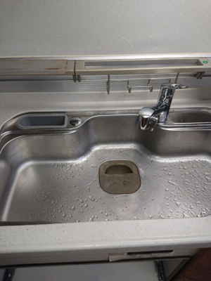 18年使用されたシャワー引き出し式蛇口、本体根元から水漏れしており耐用年数を考慮し本体交換。浄水器水栓を取り外し浄水器内蔵型蛇口を取り付けました。