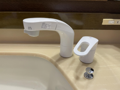 20年以上お使いの洗面蛇口のレバー根本からの水漏れでした。ご主人様が途中まで分解されてましたが、本体の磨耗があったので蛇口本体の交換となりました。