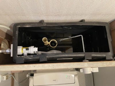 タンク内蔵型のトイレでした。便器の方へチョロチョロ出てきていたので内部の浮き部分が劣化していることが分かりました。 年数も長く使用していることから浮き部分とゴム玉部分の交換となりました。